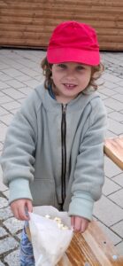 Viele Kitagruppen wurden eingeladen – so auch die Kinder unseres Kinderhauses. Mit leuchtend roten Cappies gekennzeichnet, freuten sich unsere Kids auf die liebevoll vorbereiteten Stationen, die Hüpfburg und die Popcornmaschine.